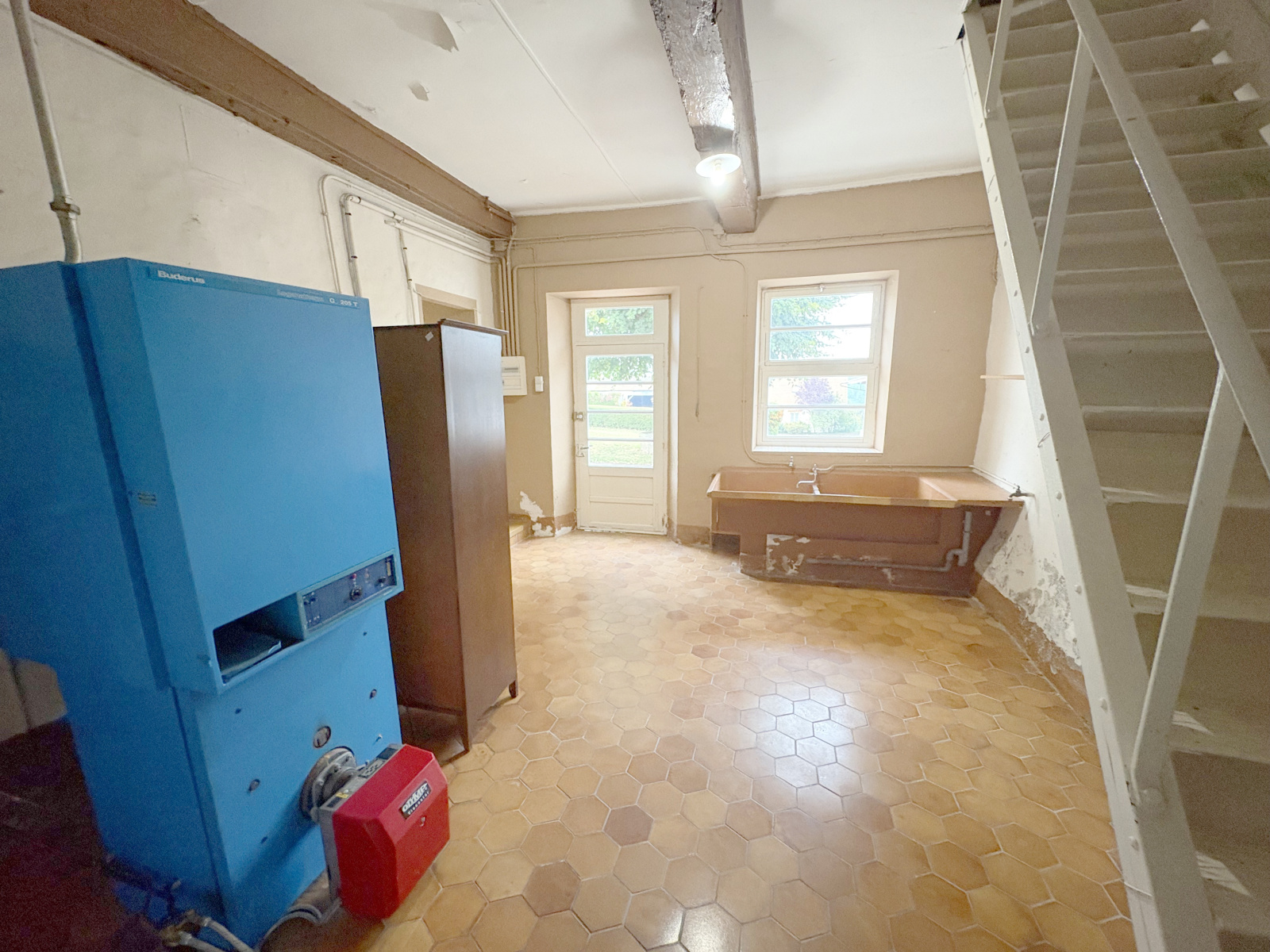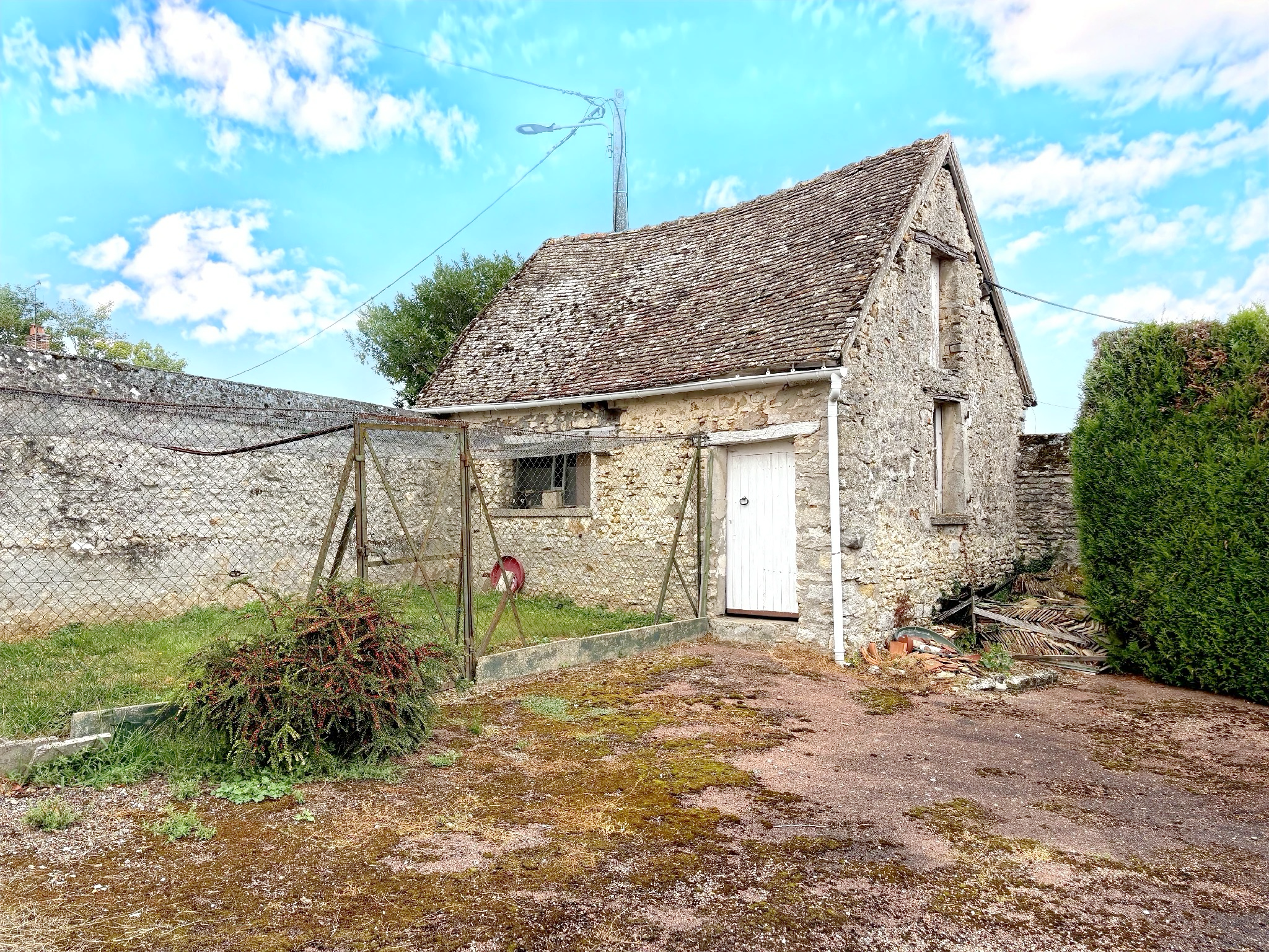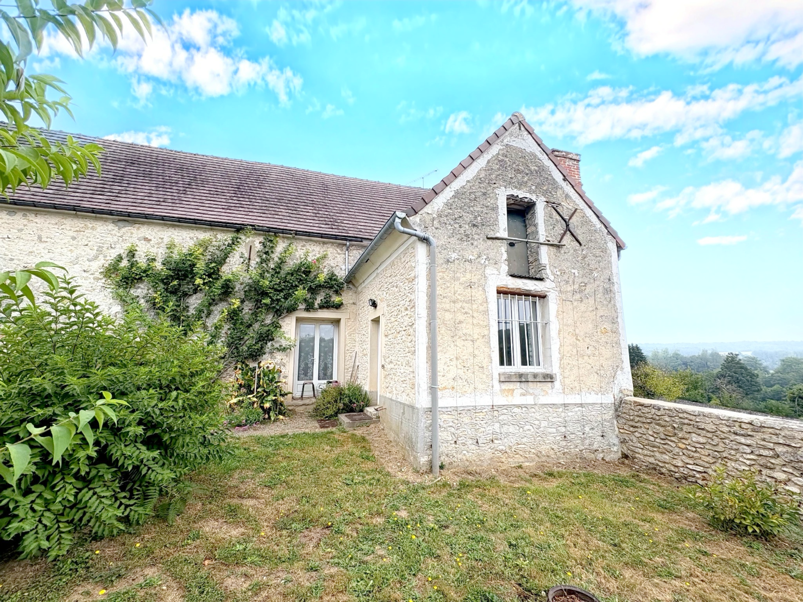 - D'une maison principale en pierre comprenant une entrée, un salon, une grande cuisine avec salle à manger, une buanderie - chaufferie, un débarras et un wc pour le rdc. A l'étage : un palier desservant 3 chambres et une salle d'eau. Sous comble, un grenier récupérable (environ 45m2).
