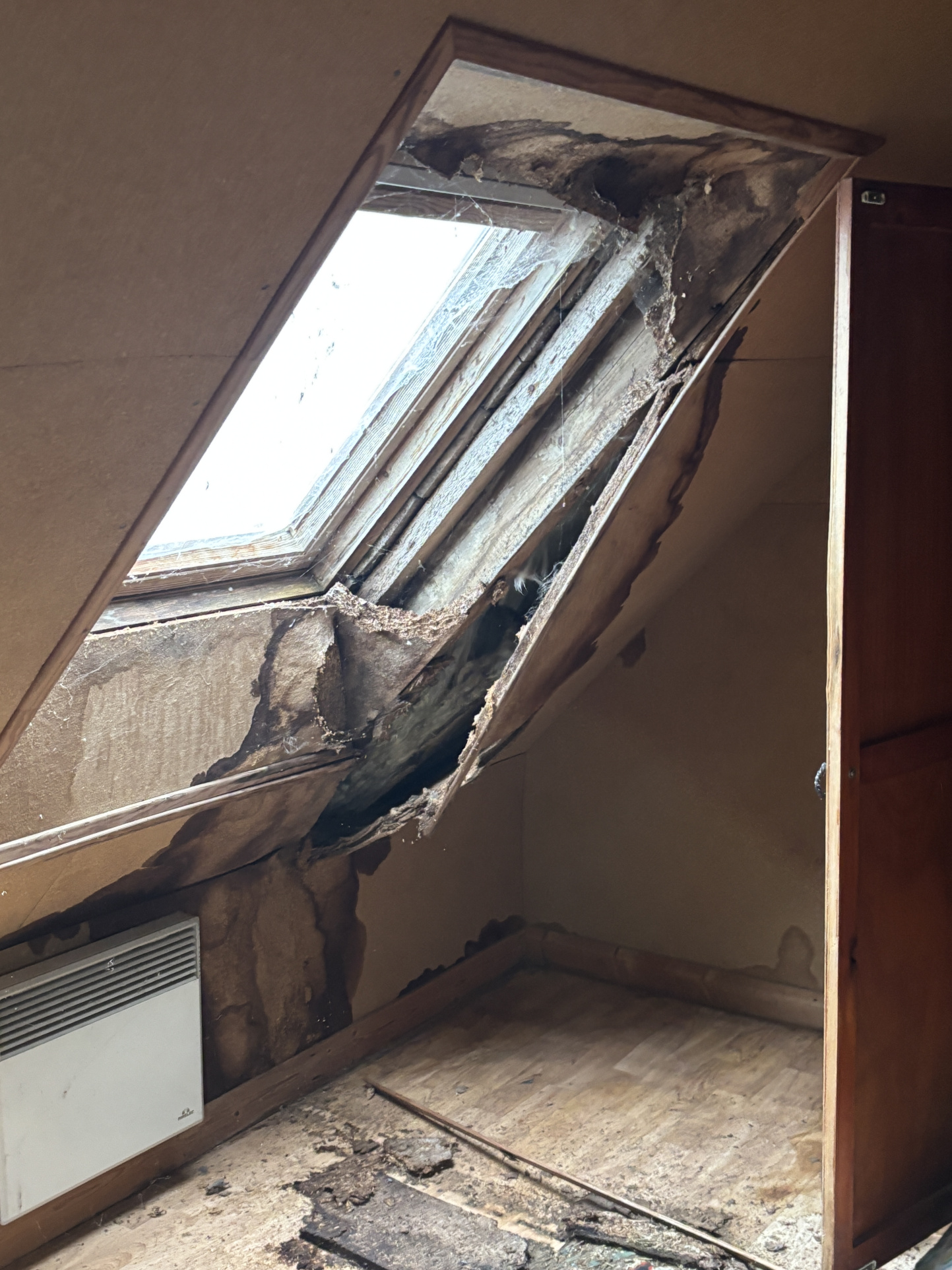 Présence de mérule avérée, impliquant une prise en charge spécifique et des travaux importants.