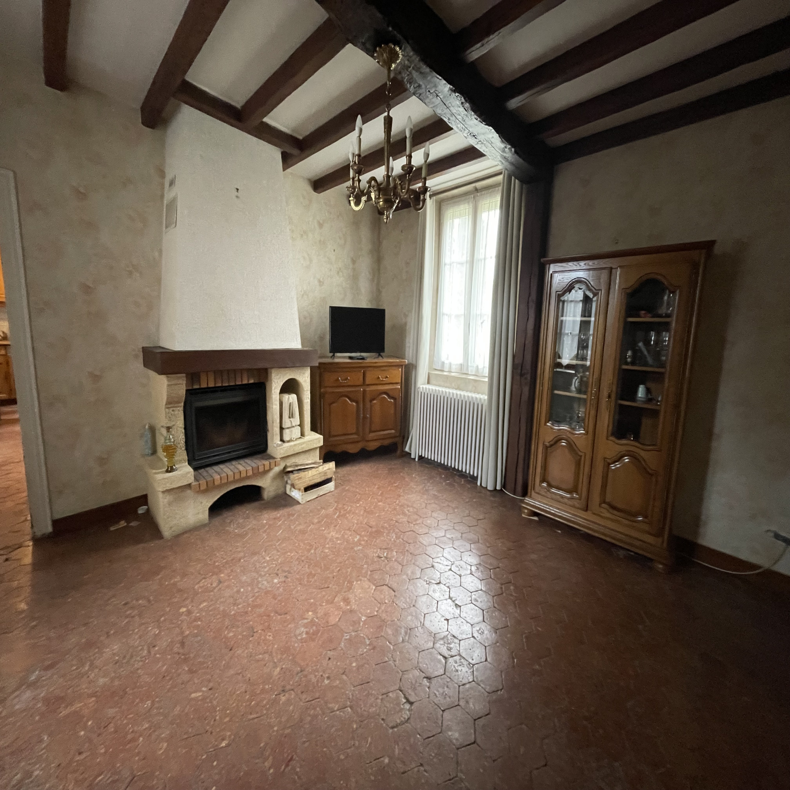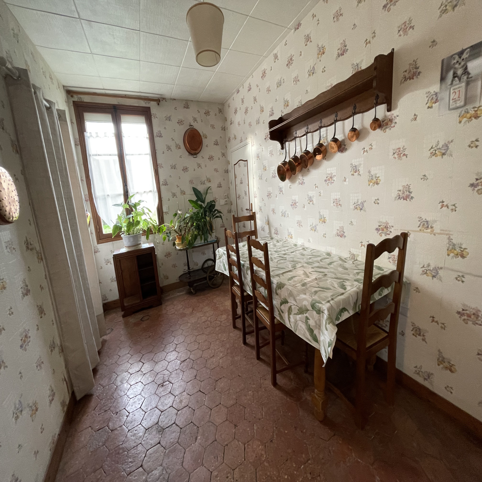 Au rez de chaussée: une entrée, une salle à manger, un salon avec cheminée insert, une cuisine aménagée équipée, une salle d'eau avec wc, une buanderie, une chambre.