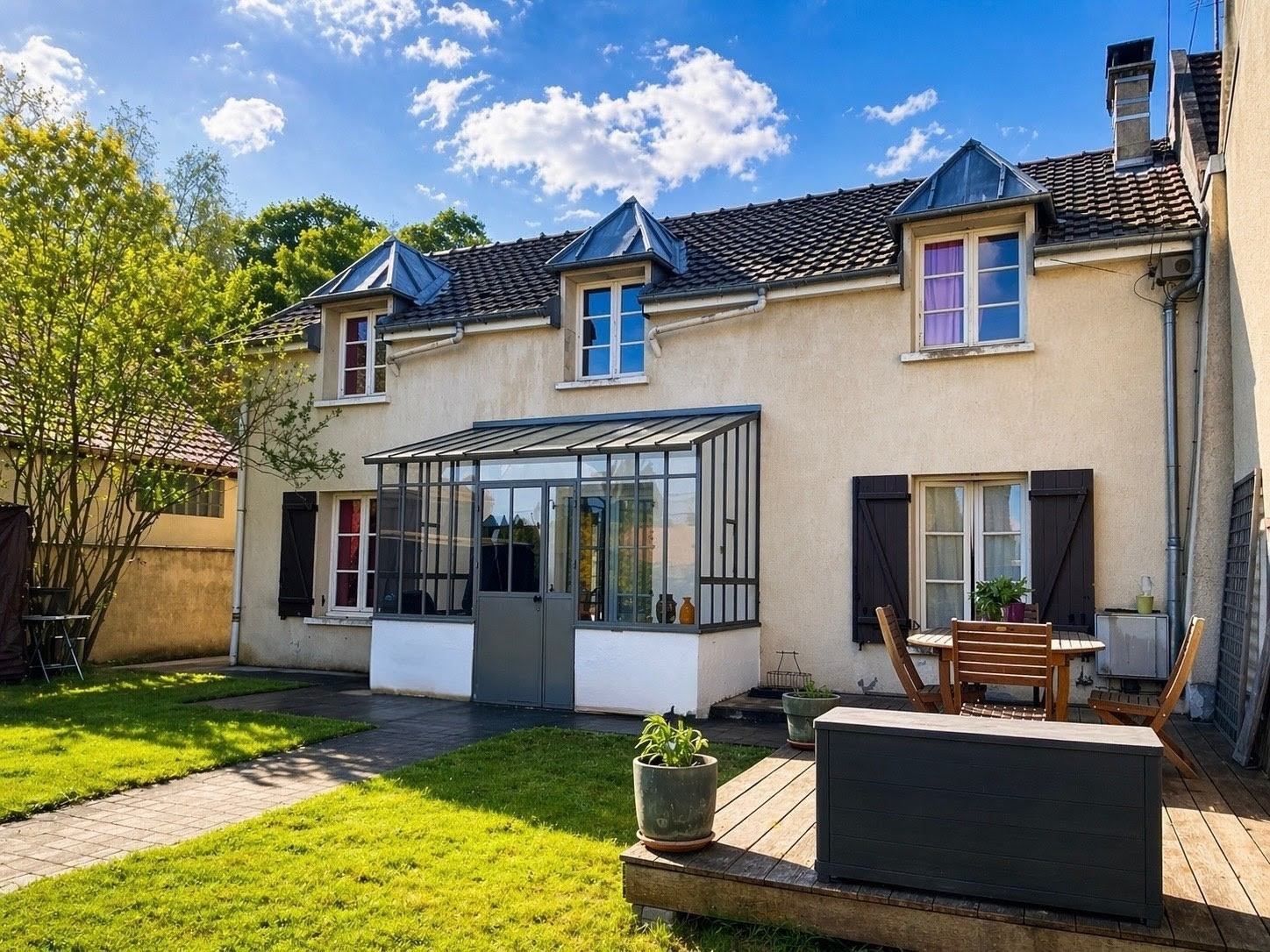 Idéalement située, la maison est proche des écoles, à environ 10 minutes de la gare et bénéficie de la proximité de petits commerches facilitant le quotidien.